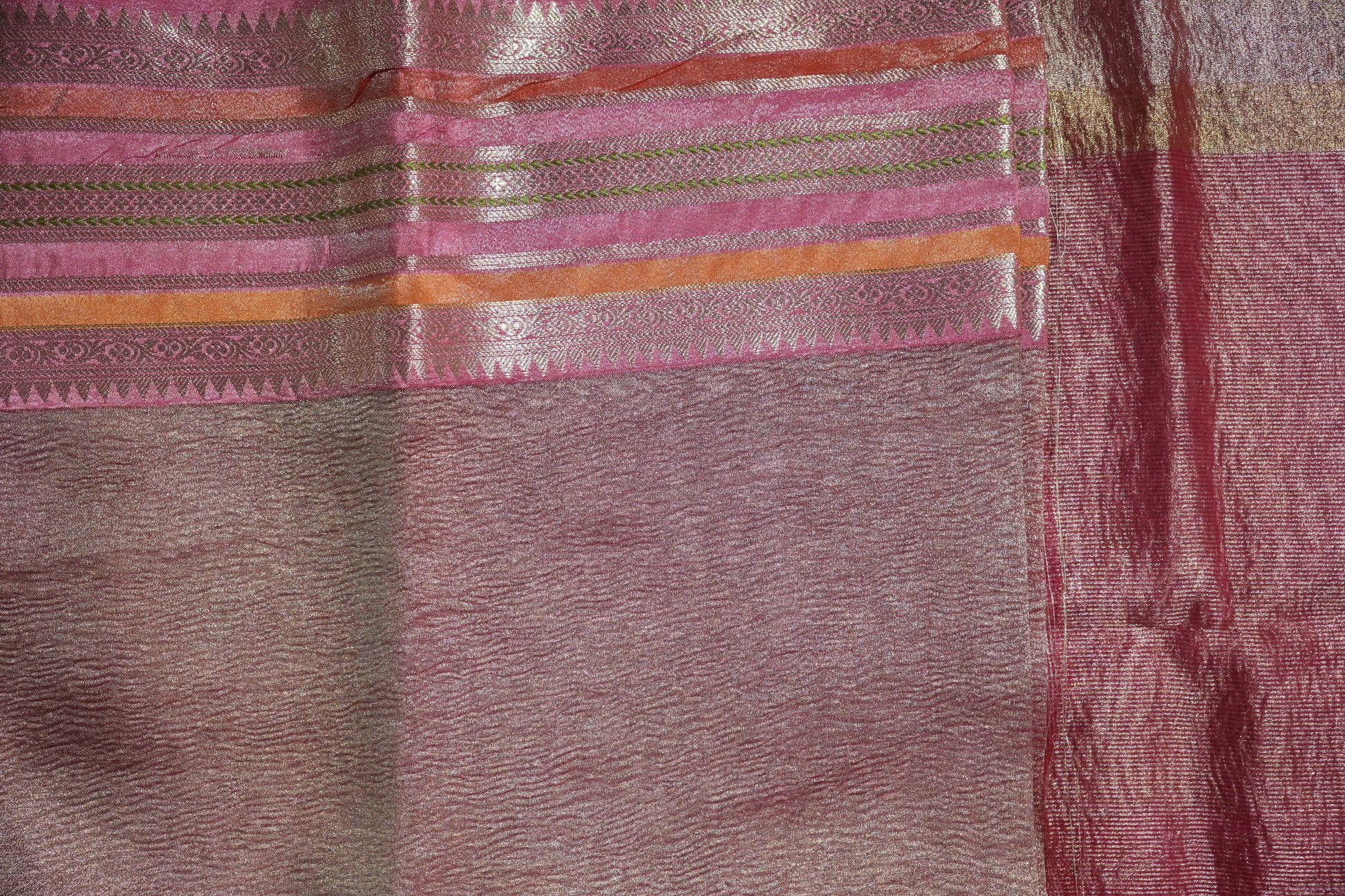 The saree is adorned with premium zari work along the borders and pallu, adding a royal glow without being overpowering. Its smooth texture, graceful fall, and finely detailed weaving make it an ideal choice for wedding guests, festive occasions, family functions, and traditional celebrations.