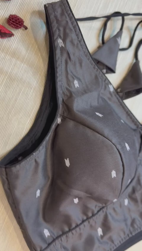 Crafted in rich Jamdani silk, this elegant V-cut blouse features built-in padding for enhanced comfort and a seamless fit. Designed to pair beautifully with festive and wedding sarees, it offers a perfect blend of traditional texture and modern silhouette. Ideal for long celebrations with effortless style.
